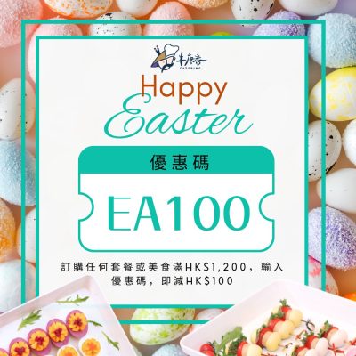 即日起至4月7日,網上訂購任何套餐或美食,輸入優惠碼EA100,即減HK$100 (消費滿:HK$1,200)